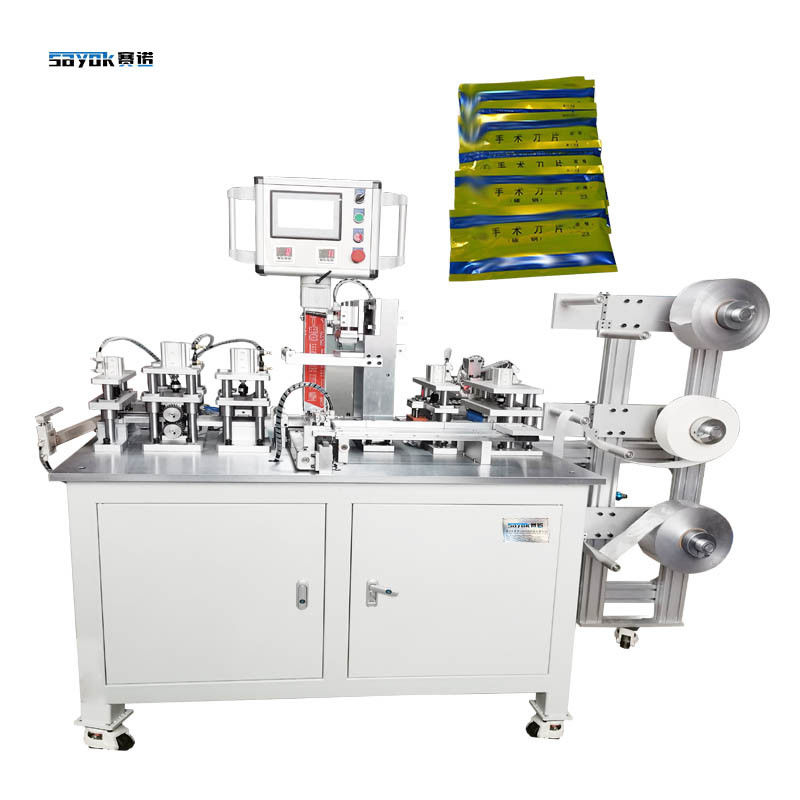 Είναι ειδικά σχεδιασμένο για να συσκευάζει χειρουργικές λεπίδες ξεχωριστά, οι οποίες θα είναι 3 στρώσεις χαρτιού, πάνω και κάτω στρώση με χαρτί αλουμινίου,το μεσαίο στρώμα θα είναι αντιτριβή χαρτί έτσι ώστε οι χειρουργικές λεπίδες δεν θα σκουριάσει κατά τη διάρκεια της διάρκειας ζωήςΑυτό το χαρακτηριστικό το καθιστά δημοφιλή επιλογή για ιατρικές εγκαταστάσεις και κατασκευαστές χειρουργικών οργάνων που πρέπει να εξασφαλίσουν ότι τα προϊόντα τους προστατεύονται κατάλληλα κατά τη μεταφορά και την αποθήκευση.Η μηχανή των τεσσάρων πλευρών σφραγίδα συσκευασία τρόπο διασφαλίζει ότι οι λεπίδες είναι εντελώς σφραγισμένα, αποτρέποντας οποιαδήποτε μόλυνση ή βλάβη κατά τη μεταφορά.